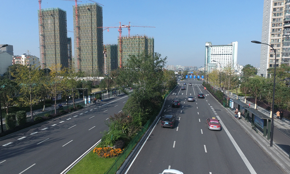 G20峰會環境整治項目,位于杭州市江干區,施工內容包括道路綠化、地面鋪裝及景觀小品等。