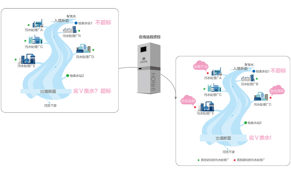 在線遠(yuǎn)程質(zhì)控系統(tǒng)作為在線監(jiān)測設(shè)備的電子警察,用可溯源的國家標(biāo)準(zhǔn)物質(zhì),以獨(dú)特的外部質(zhì)控方式實(shí)現(xiàn)高頻次的飛行檢查、盲樣核查,根治數(shù)據(jù)造假問題,實(shí)現(xiàn)監(jiān)測數(shù)據(jù)的可信、可比、可用,改變在線監(jiān)測數(shù)據(jù)僅用來作為參考的現(xiàn)狀。